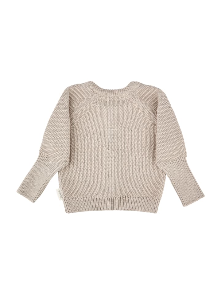 Вязаный кардиган с текстурированной отделкой из хлопковой пряжи /// Планка с кокосовыми пуговицами по центру спереди /// Практичные манжеты, которые растут вместе с ребенком, можно подворачивать или носить расстегнутыми