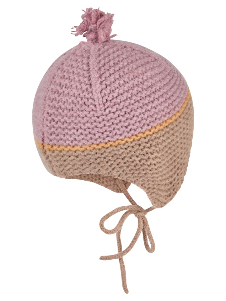 Вязаная шапка из овечьей шерсти /// с кисточкой /// с пришитыми ушанками /// и завязками