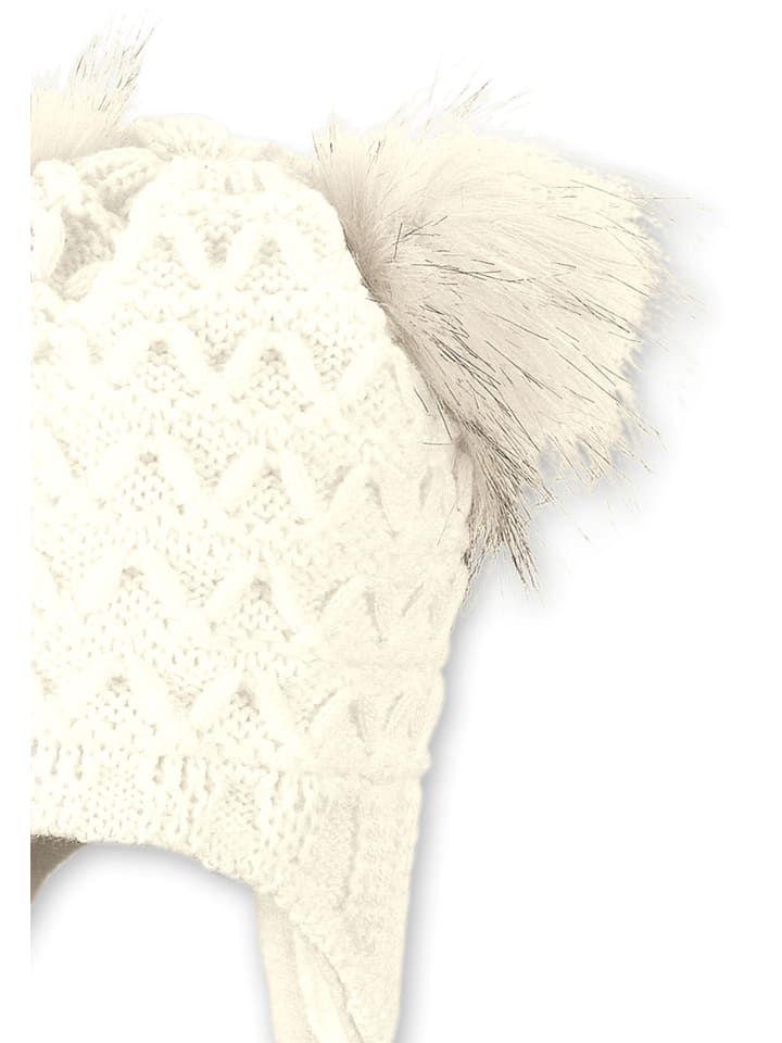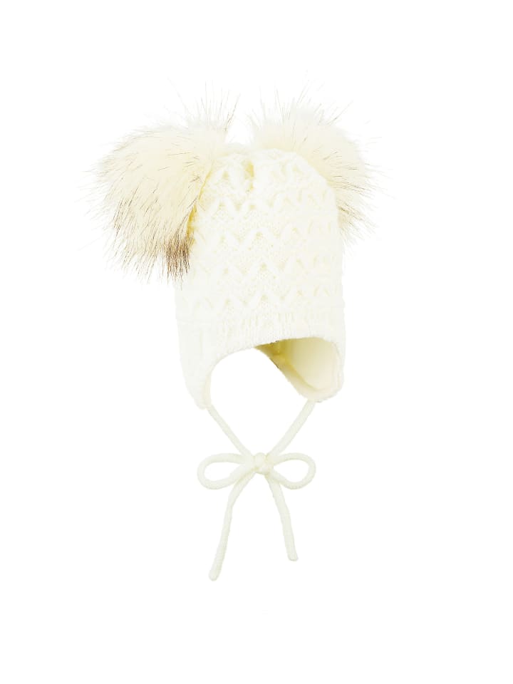 Вязаная шапка с текстурой /// вязаные ушанки /// два помпона из искусственного меха /// завязки /// на подкладке из начесаного хлопкового трикотажа