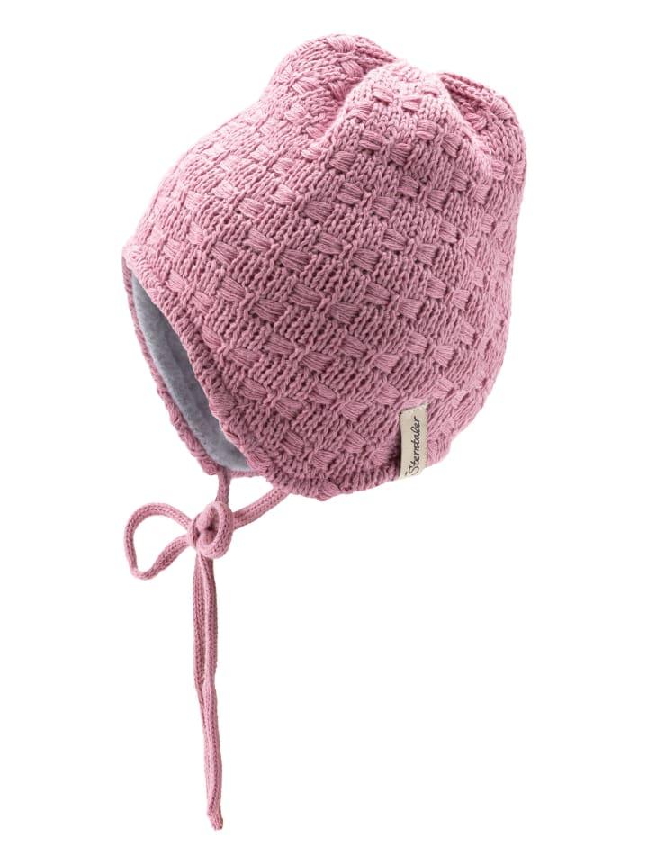 Вязаная шапка с вязаными бантами /// пришитыми ушанками /// завязками /// на подкладке из хлопкового флиса