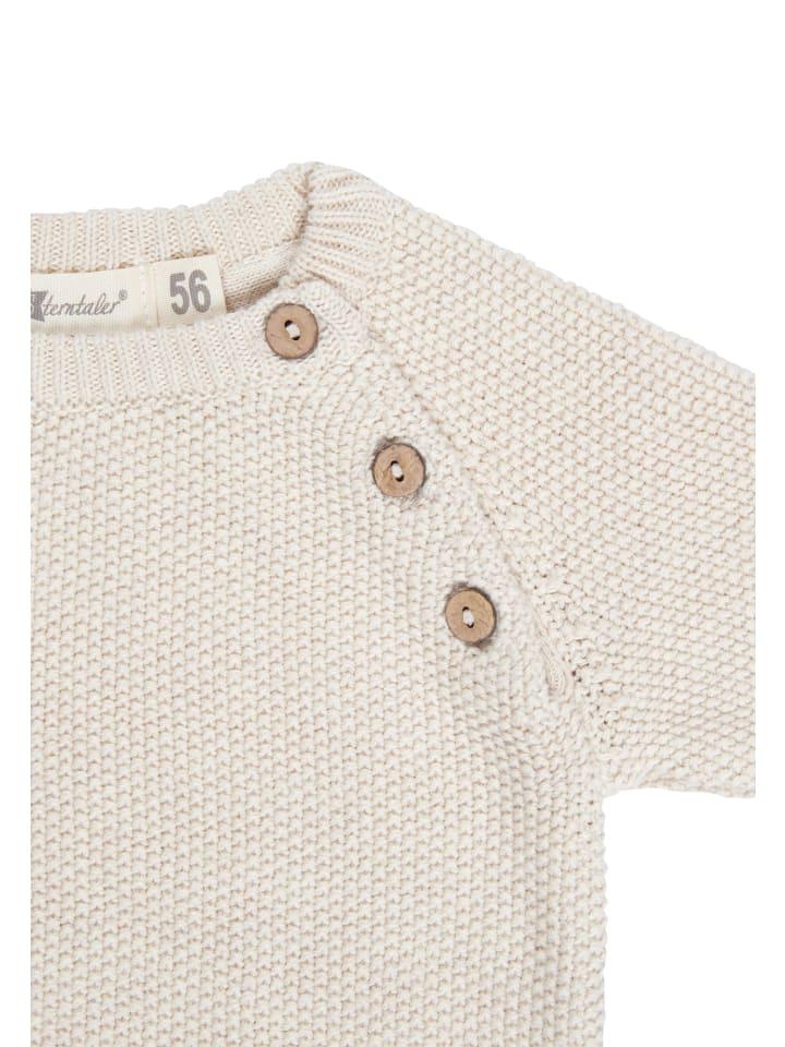 Трикотажный комбинезон с фактурной отделкой из хлопковой пряжи /// Планка с кокосовыми пуговицами на левом плече /// Потайная планка с пуговицами в промежности облегчает переодевание /// Регулируемые манжеты можно подворачивать или носить расстегнутыми