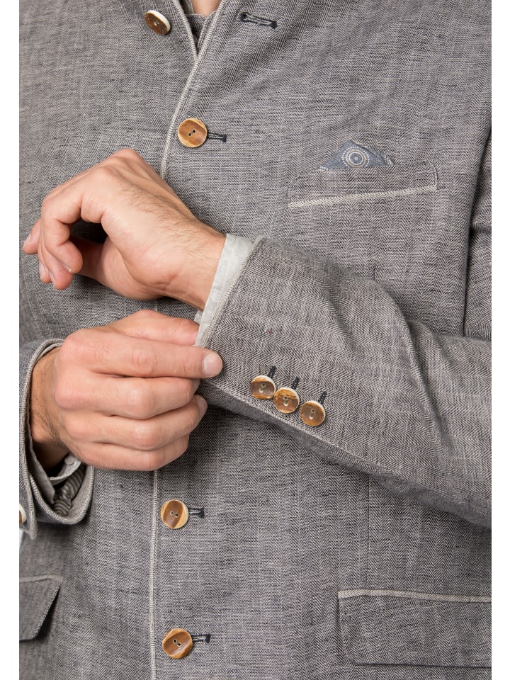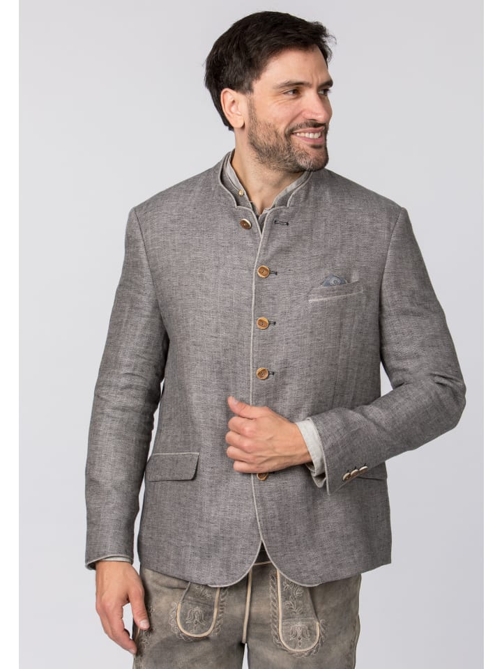 Традиционный жакет Adriano из коллекции Bergfeuer выполнен из высококачественного пестрого льна с узором елочка и поражает первоклассным мастерством. Однобортная планка с пуговицами и классический прямой крой с карманами с клапанами обеспечивают идеальную посадку и комфорт. Воротник-стойка в тон и изящная окантовка добавляют тонкие акценты и подчеркивают уникальность этого шедевра. Шлица по центральному шву сзади придает жакету особую элегантность. Традиционные роговые пуговицы, искусно выполненные, завершают изысканный образ и подчеркивают внимание к деталям. Этот жакет идеально сочетается с нашими ледерхозенами и традиционными жилетами, воплощая удачное сочетание аутентичности и элегантности. Откройте для себя неповторимое очарование аутентичной традиционной культуры костюмов вместе с Bergfeuer.