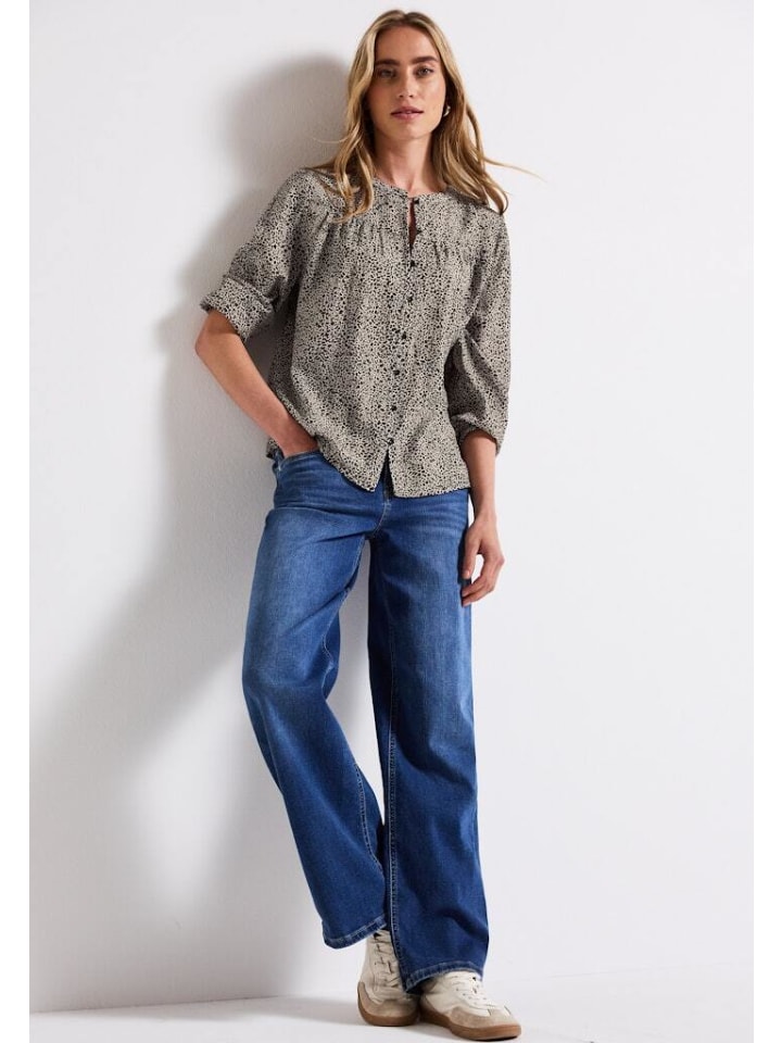Структурированная блузка с леопардовым принтом, хлопок кремового цвета