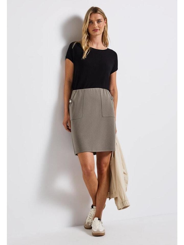 Юбка однотонного темно-бежевого цвета. Откройте для себя идеального компаньона для ваших повседневных нарядов - эта короткая юбка в чистом однотонном стиле сочетает в себе стильный дизайн и высокий комфорт при носке. Благодаря модным деталям на пуговицах на боковых карманах эта юбка расставляет модные акценты и подчеркивает ваш женственный стиль. Элегантный дизайн для любого случая. Юбка впечатляет своим простым однотонным цветом и изящными деталями на пуговицах, которые придают ей особый шарм. Короткий крой делает ее универсальной и идеальной для различных случаев, будь то спокойный день в городе или шикарный ужин. Высококачественный материал для максимального комфорта. Изготовлена из смесовой вискозы с 73% вискозы, 24% полиэстера и 3% эластана. Содержание эластичности обеспечивает оптимальную свободу движений. Удобно носить в течение всего дня. Практичные детали: Боковые карманы с модными деталями на пуговицах. Классический крой, который выгодно подчеркивает вашу фигуру. Прочная работа для длительного качества. Универсальное использование: в сочетании с Будь то с повседневной футболкой для повседневной носки или с шикарной блузкой для особых случаев, эта юбка легко адаптируется к вашему стилю и предлагает бесчисленные возможности комбинирования. Информация о товаре, Материал: 73% вискоза, 24% полиэстер, 3% эластан, Пол: Женский, Бренд: Street One. Ваши преимущества с первого взгляда: Модный дизайн с практичными карманами, Удобная смесь вискозы с эластичностью, Универсальные комбинации для разных образов, Простота ухода и долговечность. Почему вам понравится эта юбка: Эта юбка сочетает в себе стиль, комфорт и функциональность. Это идеальное решение для тех, кто ищет универсальный предмет одежды, который одновременно модный и удобный. Позвольте качеству и дизайну убедить вас и дополните свой гардероб вечной классикой.