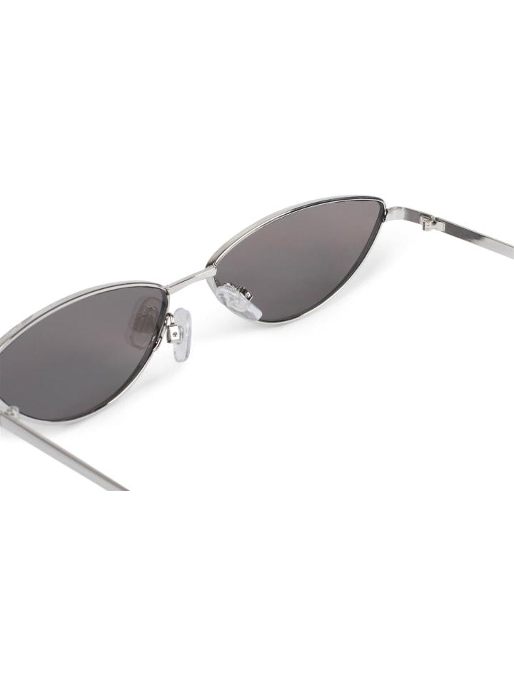 - Тонкие солнцезащитные очки кошачий глаз с металлической оправой и плоскими поликарбонатными линзами.