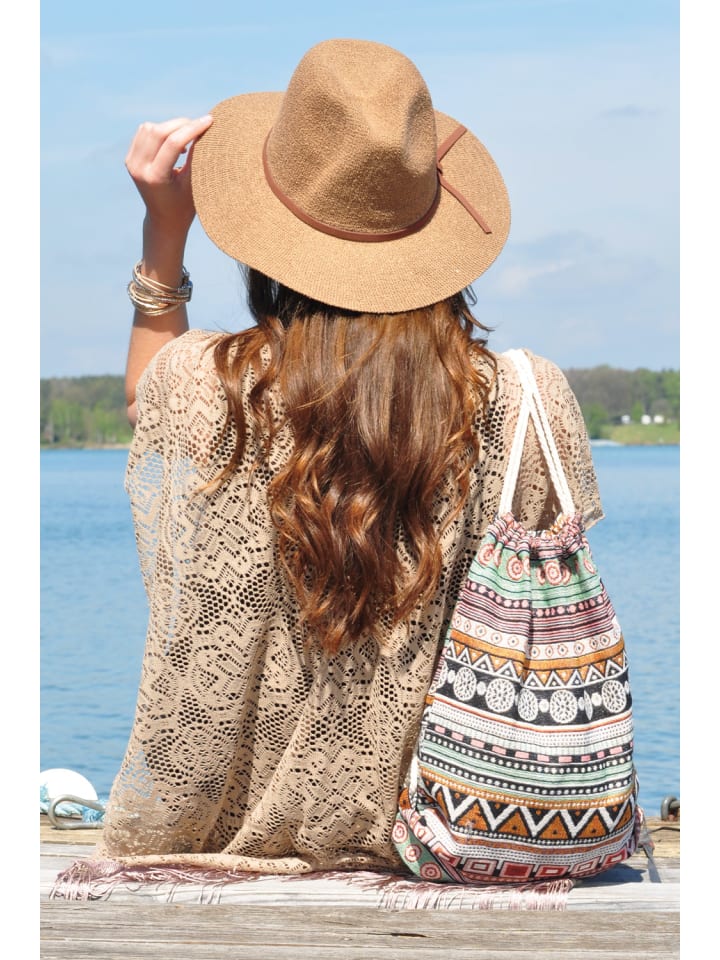 Шляпа от солнца styleBREAKER с декоративной лентой из замши.