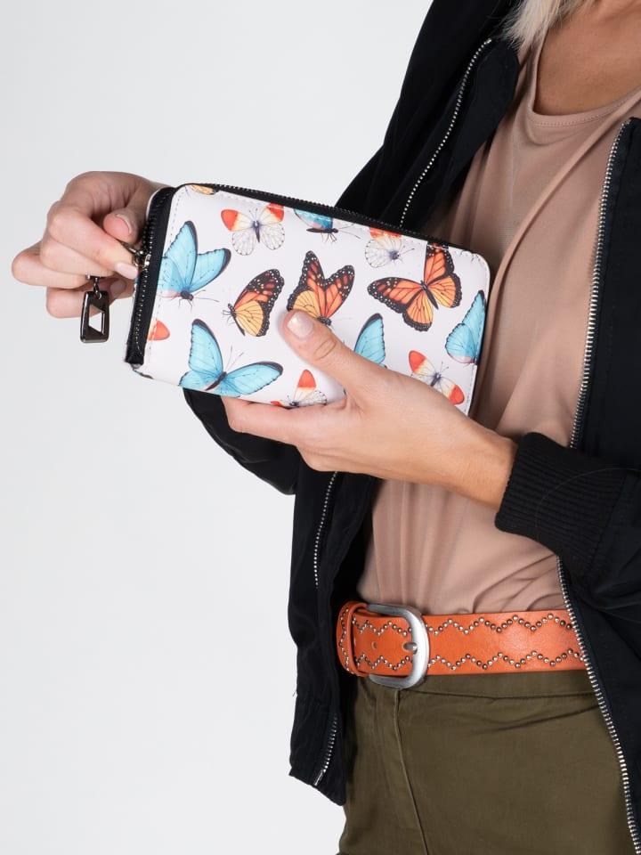 StyleBREAKER стильный кошелек с красочным рисунком бабочек, застежкой-молнией по периметру и отдельным отделением на кнопке.