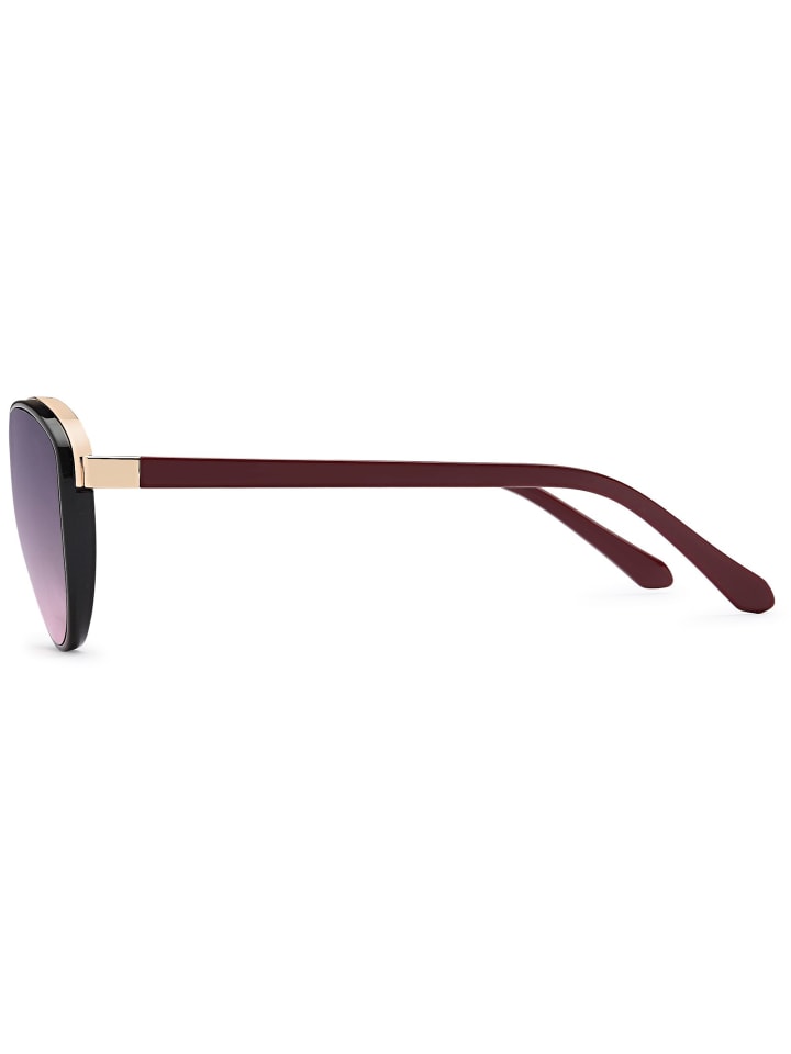 - Элегантные солнцезащитные очки с овальными плоскими линзами и филигранной пластиковой оправой.