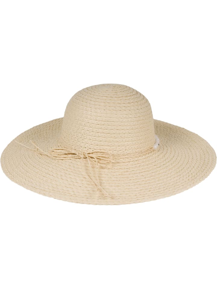 StyleBREAKER Повседневная соломенная шляпа из бумажной соломки с элегантным жемчужным ожерельем в качестве ленты и широкими полями.