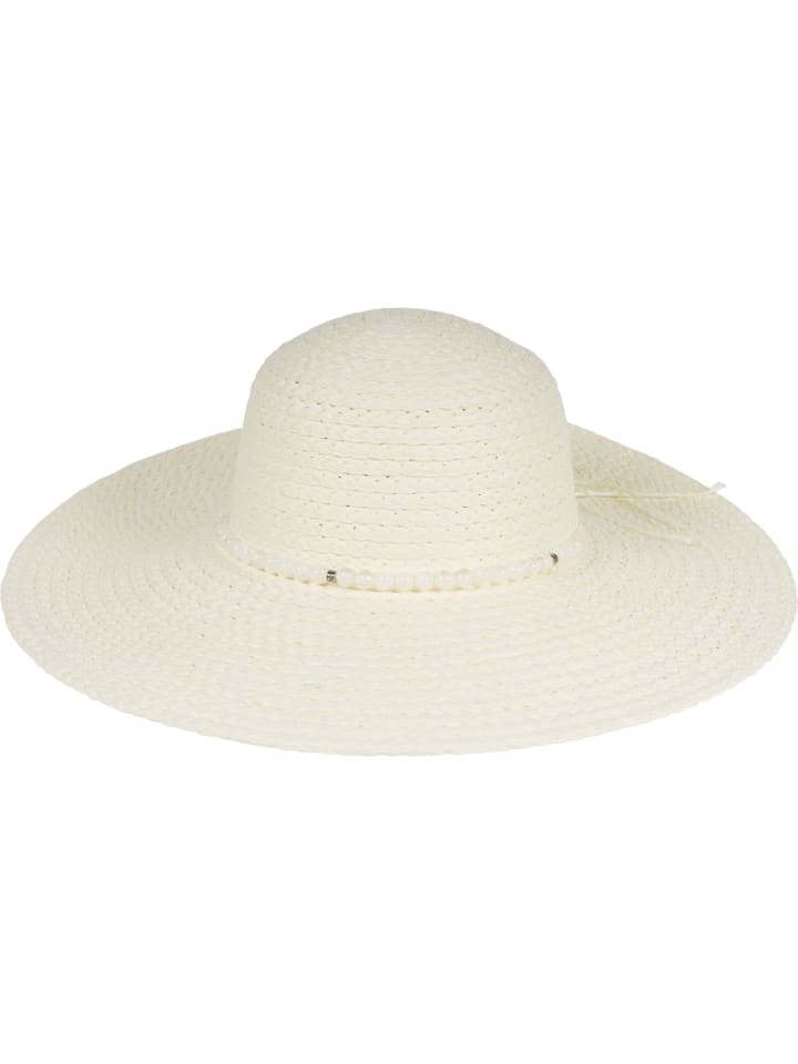 StyleBREAKER Повседневная соломенная шляпа из бумажной соломки с элегантным жемчужным ожерельем в качестве ленты и широкими полями.