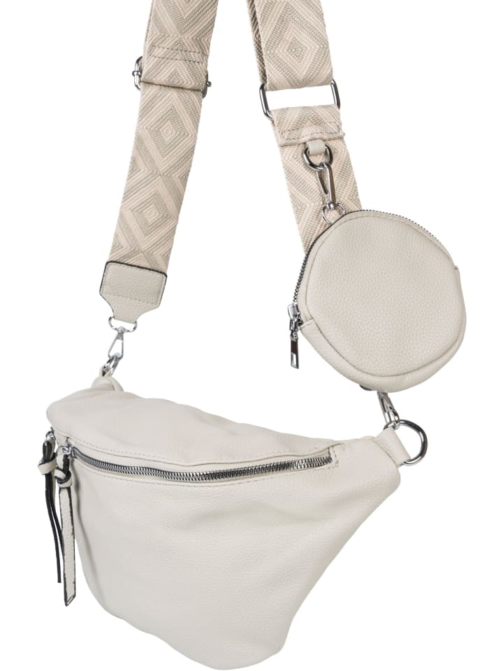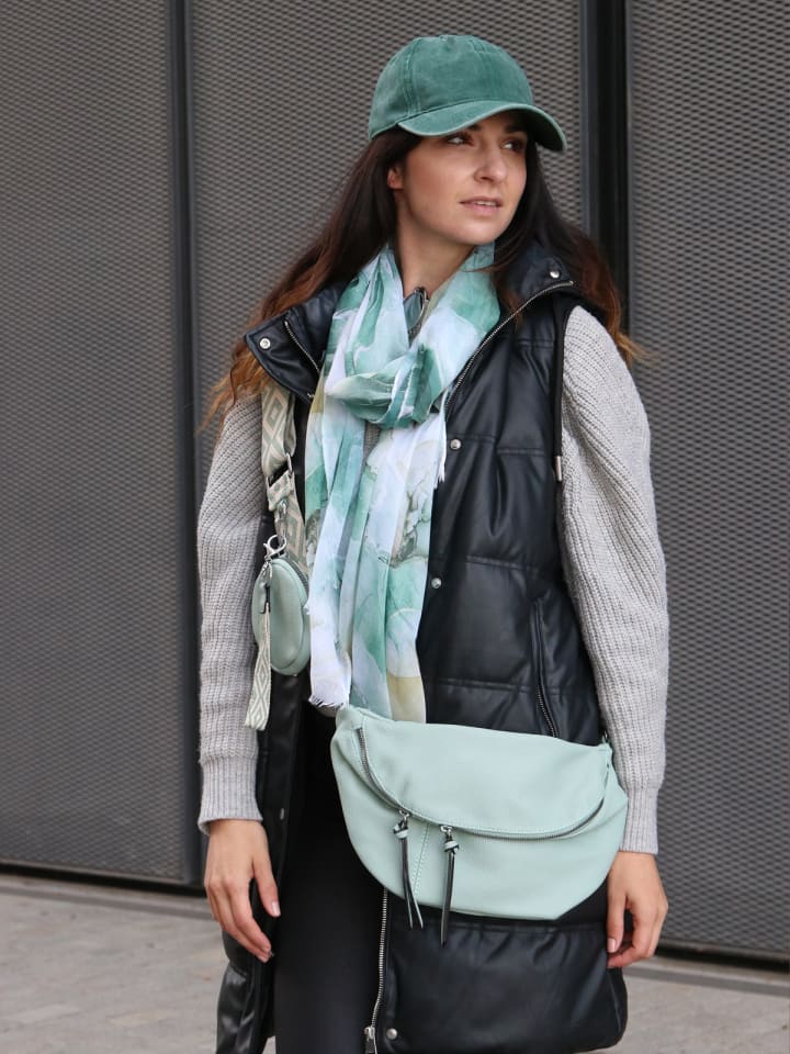 Этот элегантный комплект из двух предметов, состоящий из сумки в форме полумесяца, которую можно носить как сумку через плечо, как сумку на плече или как сумку через плечо, и небольшого круглого кошелька, прикрепленного к плечевому ремню, идеально дополнит ваш образ. Сумка застегивается на молнию и имеет отделение на молнии сзади для дополнительного хранения. Основное отделение сумки через плечо достаточно для кошелька, ключей, смартфона и других мелочей, которые вы хотите держать под рукой в дороге. Широкий плечевой ремень с ромбовидным узором из высококачественной ткани можно снять с помощью карабина. Таким образом, вы можете придать вашей однотонной сумке через плечо индивидуальный стиль в любое время и менять ее для каждого случая.