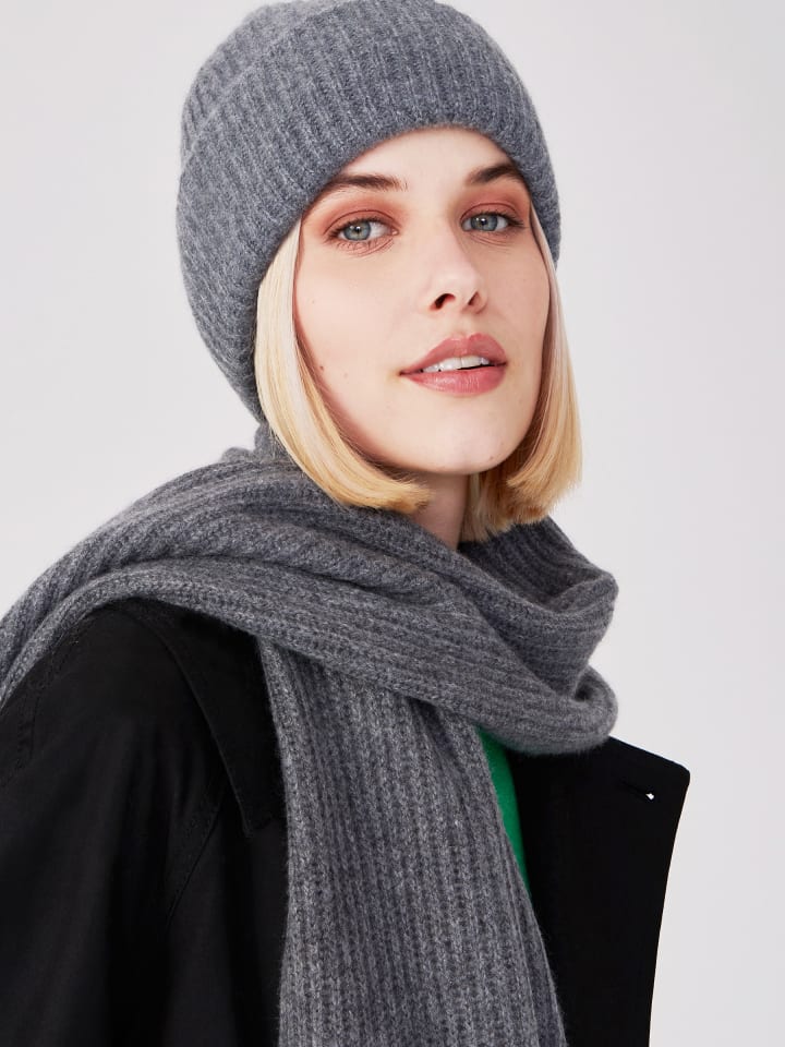 Мягкая на ощупь, согревающая, незаменимая в холодные дни: эта шапка из чистого кашемира - изысканный аксессуар во всех отношениях. Классическая резинка и широкий манжет дополнят любой образ: от спортивного до элегантного и шикарного. Подходящий шарф станет идеальным дополнением.