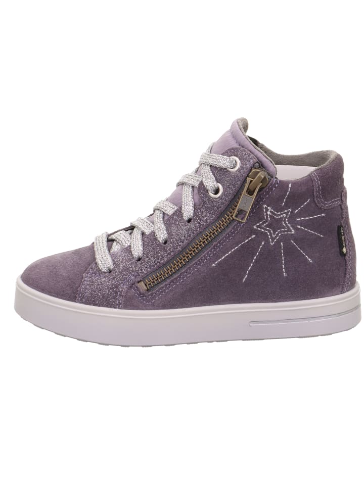 Модницы блистают в кроссовках STELLA высотой до щиколотки, создавая стильный образ. Элегантный принт с фольгой и металлические акценты на подошве придают этим кроссовкам Superfit неповторимый вид. Металлические люверсы, двухцветные шнурки и узор в виде звезд на подошве добавляют непринужденный штрих. STELLA гарантированно произведет яркое впечатление.