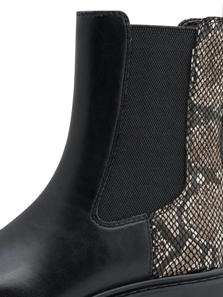 Почувствуйте себя сильным и неповторимым в этих ботинках челси от Tamaris - идеальный структурированный дизайн сочетается с современной толстой подошвой и удобным каблуком-платформой высотой 43 мм. Эластичные вставки, тисненая кожа и мягкая стелька Touchit позволят вам ходить расслабленно осенью и зимой. На работе, в городских прогулках или в повседневной жизни - эти ботинки до середины голени придадут вам городской шик и вдохновят вас на создание собственного стиля.