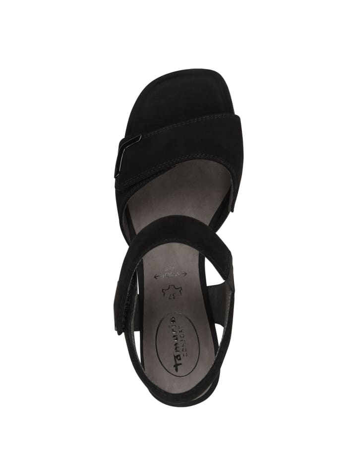 Добавьте модных акцентов с этими босоножками от TAMARIS! Стильный блочный каблук высотой 5 см и голенище высотой 6 см добавят элегантности любому образу. Высококачественный кожаный верх в сочетании с круглым носком обеспечивает не только комфорт, но и вневременной стиль. Широкая колодка обеспечивает комфорт, а стелька из смеси кожи и текстиля - приятный комфорт при ношении. Благодаря функции MultiAdjustable вы можете отрегулировать их по своему вкусу. Приготовьтесь к незабываемым моментам!