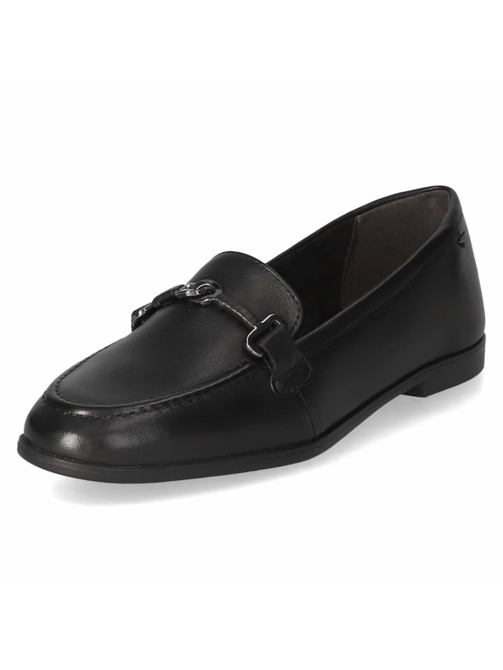 Эти черные женские тапочки/лоферы Tamaris из гладкой кожи отличаются простой элегантностью. Сдержанный шов с бусинами придает обуви изящную структуру, а декоративная пряжка платинового цвета над подъемом добавляет современный и элегантный акцент.