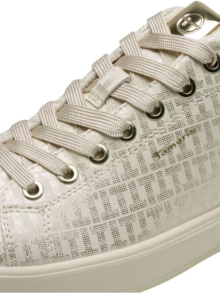 Эти стильные кроссовки из высококачественного синтетического материала сочетают в себе спортивный дизайн и современный шик. Доступные в элегантных черном, ярко-белом и нежно-бежевом цветах, они идеально подходят как для повседневной носки, так и для расслабленного отдыха. Плоская структурированная подошва и удобная съемная стелька обеспечивают приятный комфорт. Специальные металлические акценты и изысканная шнуровка дополняют образ и делают эти кроссовки универсальными компаньонами для вашего личного стиля.