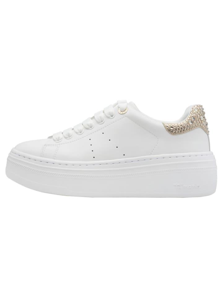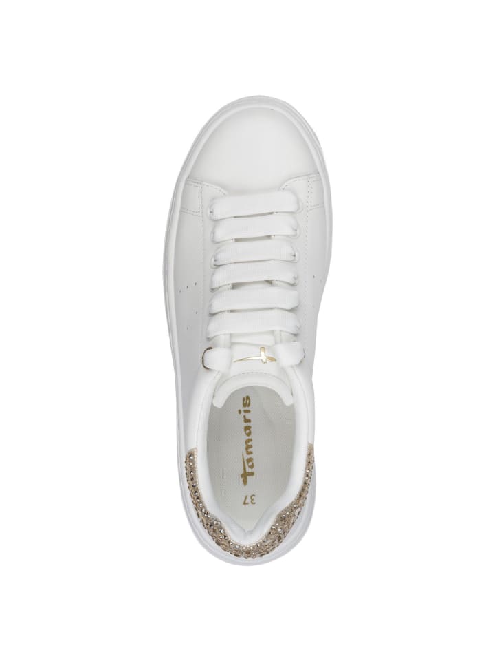 С низкими кроссовками Tamaris вы выйдете на новый уровень стиля: отделка стразами, кристаллами и контрастная область пятки помогут вам всегда выделяться в повседневной жизни и во время шопинга. Толстая структурированная подошва дарит ощущение бодрости при ходьбе, а съемная стелька обеспечивает индивидуальный комфорт. Будь то отдых, летний отпуск или городская экскурсия: вы заявите о своей индивидуальности и будете излучать городской шик и уверенность в себе с каждым шагом.