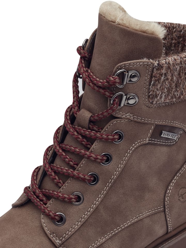 С нетерпением ждем неспешных прогулок: эти повседневные ботинки на шнуровке порадуют вас мягким меховым воротником и, благодаря технологии Duotex, сохранят ноги в тепле и сухости в любую погоду. Рельефная подошва глубиной 4 см обеспечит надежное сцепление и позволит вам наслаждаться бодрящими прогулками - будь то в городе или на природе. С мягкой стелькой Touchit вы будете наслаждаться каждым шагом и будете готовы к личным моментам благополучия.