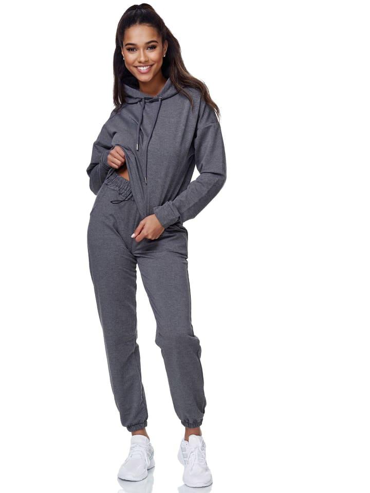 Комплект состоит из топа с капюшоном и брюк на шнурке