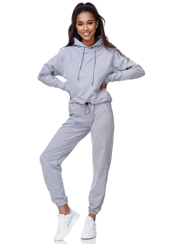 Комплект состоит из топа с капюшоном и брюк на шнурке