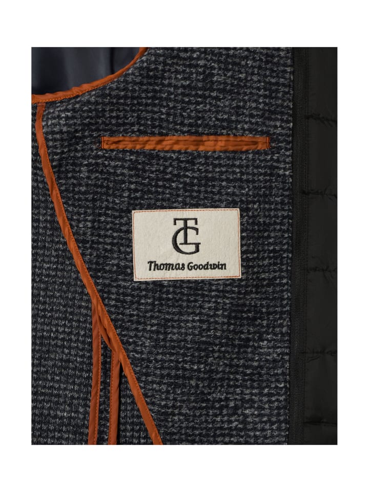 Куртка Thomas Goodwin 3347 сочетает в себе классическую элегантность и спортивную универсальность. Однобортная модель с застежкой на две пуговицы, прямыми лацканами, накладными карманами и боковыми разрезами придает куртке стильный и современный вид. Съемный жилет позволяет носить ее по-разному - идеально подходит для смены погоды или для создания повседневных многослойных образов. Высококачественное сочетание материалов: 55% полиэстер, 30% полиакрил (ПАН) и 15% шерсть - обеспечивает комфорт и аккуратную посадку.