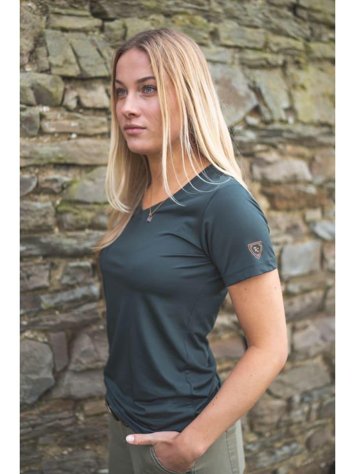 Эта практичная футболка поместится в любой багаж: она проста в уходе, быстро сохнет и всегда в отличной форме благодаря смеси полиэстера с 5% эластана. Небольшой V-образный вырез и легкая линия талии выгодно подчеркивают фигуру в размерах от 34 до 54. Выбирайте из трех цветов из актуальной коллекции Tom Collins.
