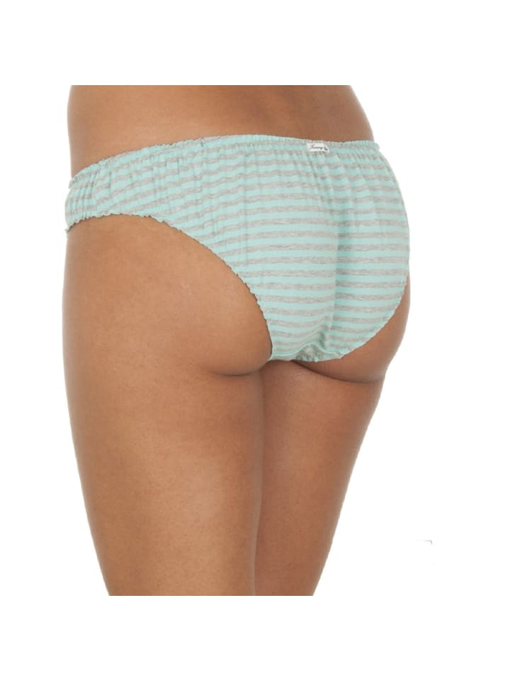Зеленые трусики с серыми полосками.