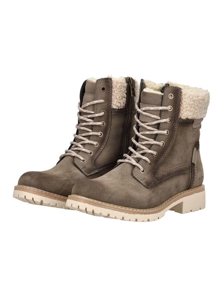 Эти модные ботильоны на шнуровке от Tom Tailor сочетают в себе модный дизайн и повседневный комфорт для холодных дней. Верх из высококачественной искусственной кожи и текстиля придает обуви современный вид и обеспечивает удобную посадку. Классическая шнуровка обеспечивает оптимальную поддержку, а прочная подошва - надежную опору.