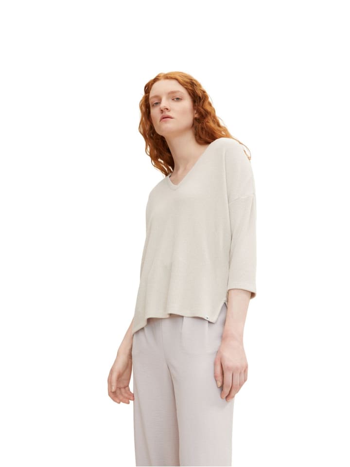 Состав свитера: 61% полиэстер, 35% вискоза и 4% эластан. В модели "LOOSE V-NECK" свободного кроя вы будете выглядеть элегантно, особенно в свободное время. Женский свободный свитер Tom Tailor "LOOSE" с V-образным вырезом и рукавами 3/4 выглядит по-настоящему стильно и позволит вам выглядеть стильно.
