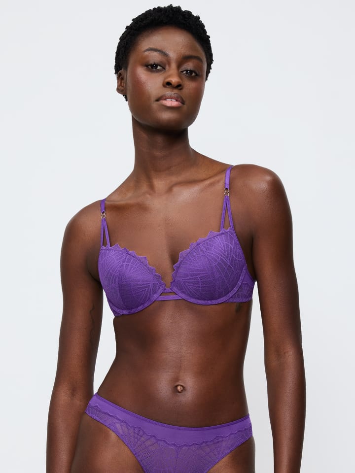 Этот бюстгальтер пуш-ап с графичным кружевным дизайном и соблазнительным вырезом пуш-ап. Легкие чашки и удобные косточки обеспечивают комфортную посадку. Минимальная посадка соответствует молодой, соблазнительной концепции, которая также включает фирменные двойные кольца на бретельках.