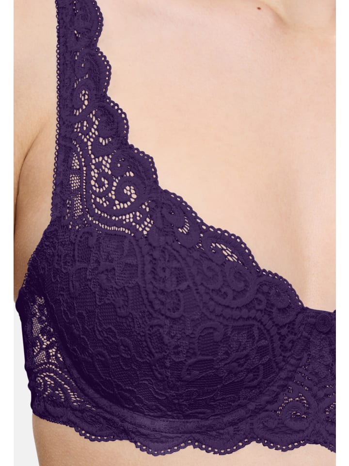 Бюстгальтер-балконет на косточках из серии Amourette поистине уникален благодаря мягкому эластичному кружеву, которое доходит до самых бретелей. Новые V-образные застежки обеспечивают идеальный комфорт, фиксируя бретели на нужной длине. Они также обеспечивают идеальную поддержку.