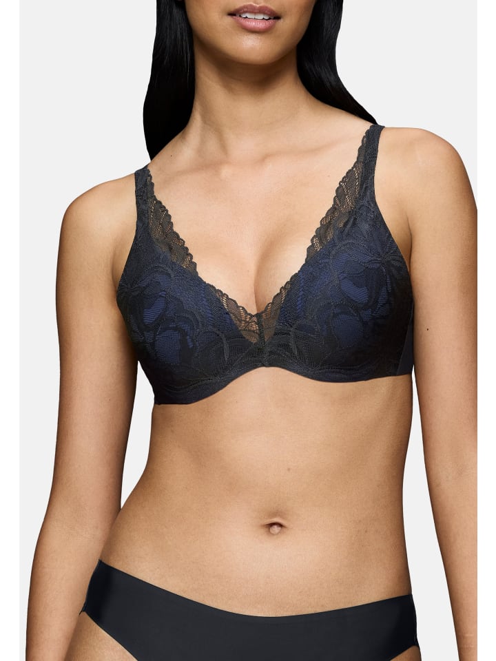 Революционное ощущение поддержки: этот инновационный бюстгальтер с мягкими и гибкими 3D-косточками обеспечивает надежную поддержку без ощутимого давления. Мягкие чашки с зауженными краями создают красивое декольте, а тонкое кружево гарантирует идеальную посадку по всей длине. Идеально подходит для тех, кто ценит комфорт и форму без компромиссов.