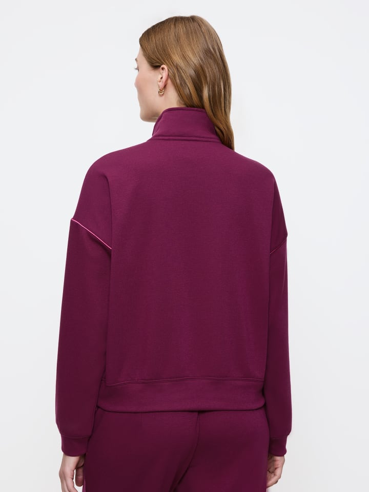 Свободный свитер с полумолнией, идеально сочетающий в себе современный дизайн и уютное тепло. Воротник-стойка, модные манжеты, контрастная окантовка и невероятно мягкий внутренний материал.