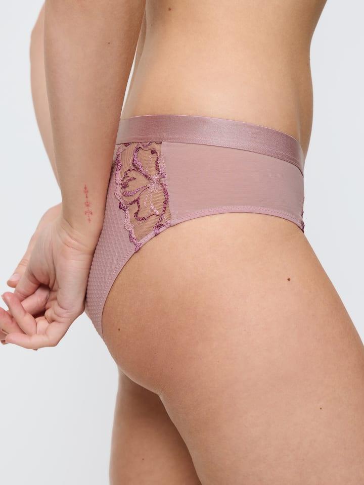 Эти трусики Tai средней обхвата выполнены из мягкой сетки с изящной разноцветной вышивкой. Они также частично изготовлены из переработанных материалов.