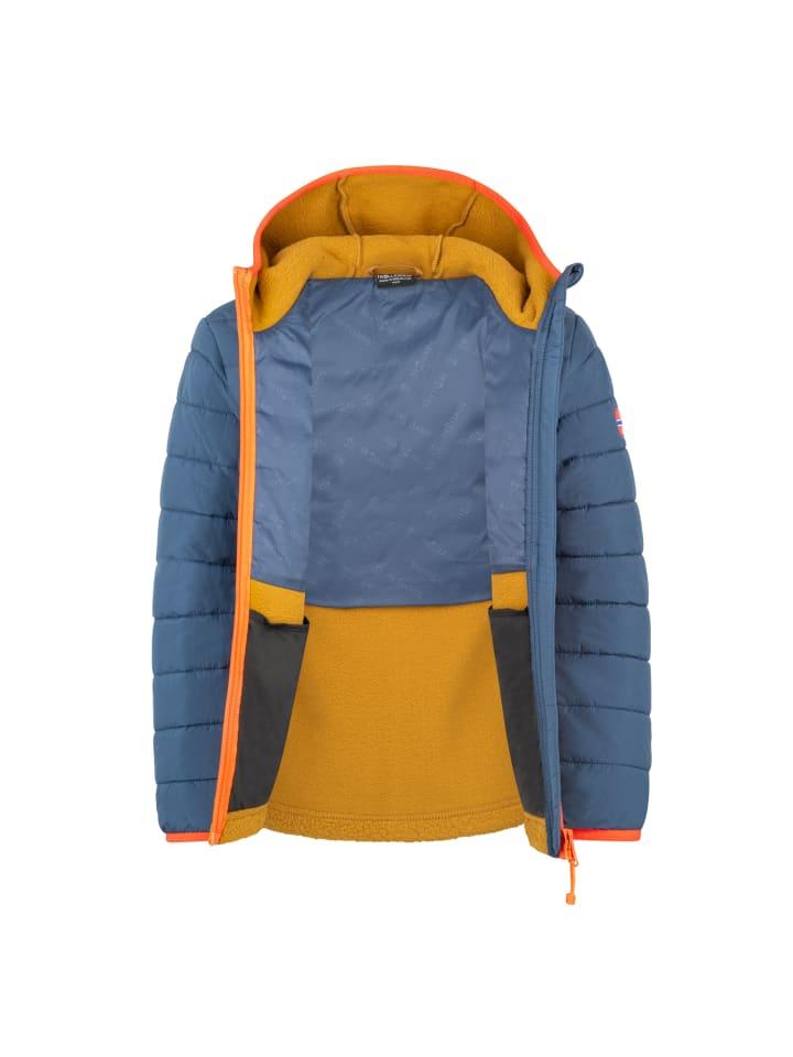 Гибридная флисовая куртка KIDS ROMSDALE JACKET сочетает в себе лучшее из двух материалов: грудь, верхняя часть спины и рукава отделаны гладкой стеганой тканью с утеплителем. Капюшон, а также передняя и задняя части бедер выполнены из теплого флиса Sherpa. Два боковых кармана на молнии позволяют безопасно хранить мелкие предметы или греть руки. Изюминкой является накладной нагрудный карман с вертикальной молнией. Подол регулируется резинкой, а капюшон и манжеты имеют эластичную окантовку.