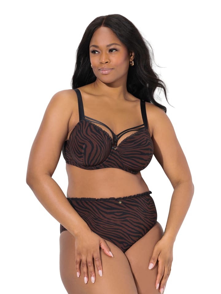 Бюстгальтер на косточках с мягкими чашками, анималистичным принтом и декоративными лентами на вырезе.