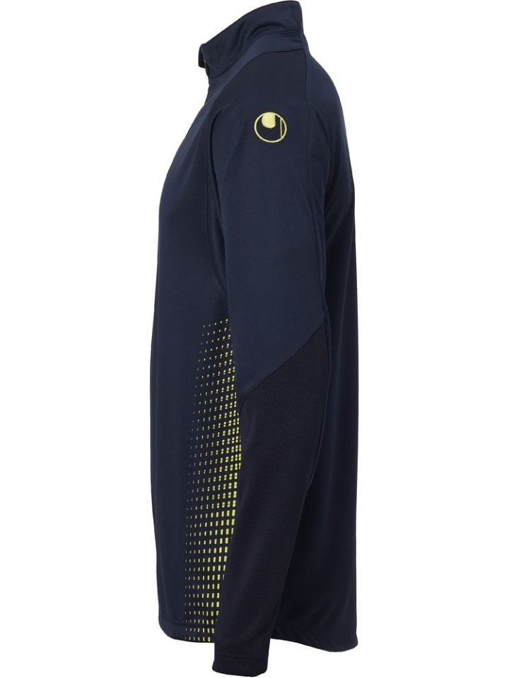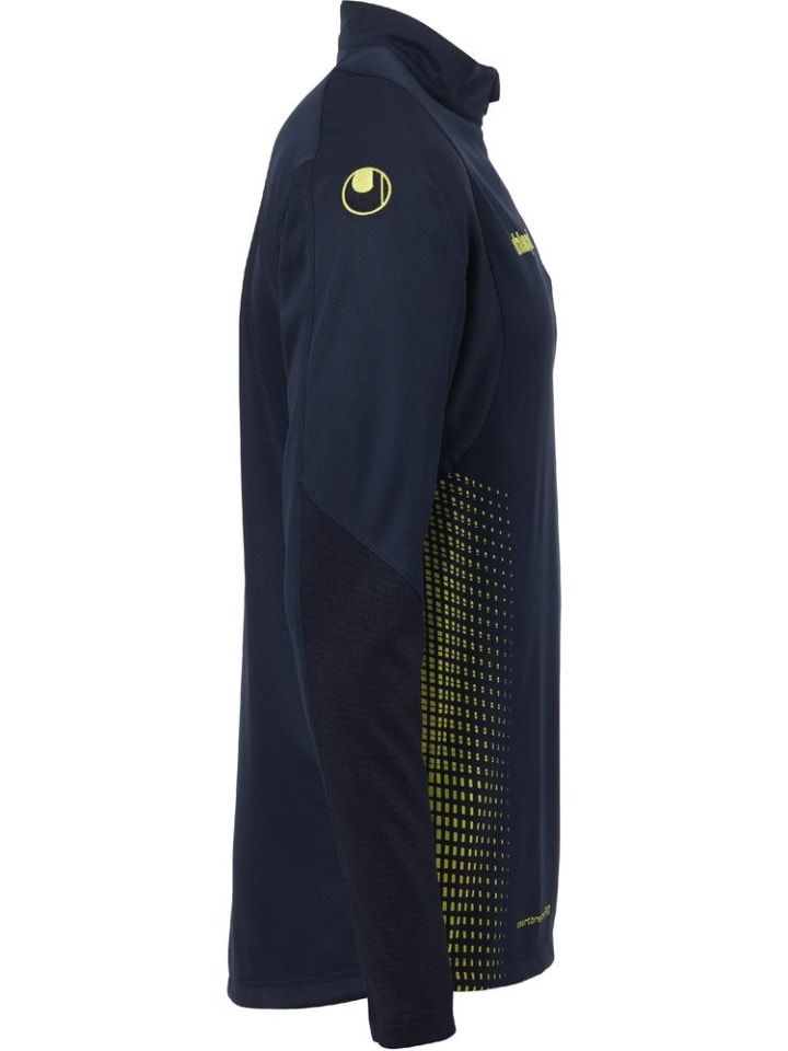 Верхняя часть с застежкой-молнией на четверть длины, выполненной в стиле счетчик. - Эластичные вставки из рубчика на рукавах. - Воротник-стойка с застежкой-молнией. - Вышитая надпись uhlsport на груди и логотипы на рукавах. Материал: 100% полиэстер.