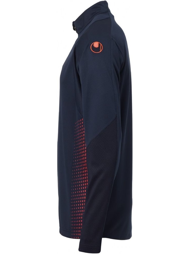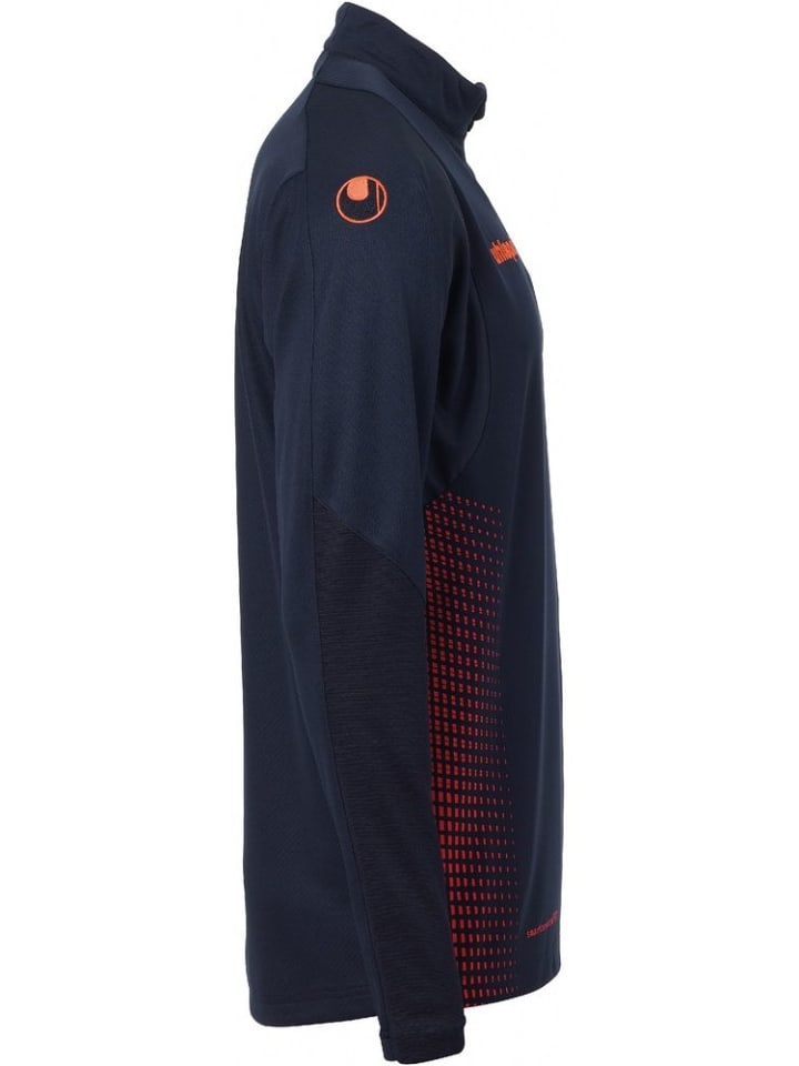 Верхняя часть с застежкой-молнией на четверть длины, выполненной в стиле счетчик. - Эластичные вставки из рубчика на рукавах. - Воротник-стойка с застежкой-молнией. - Вышитая надпись uhlsport на груди и логотипы на рукавах. Материал: 100% полиэстер.