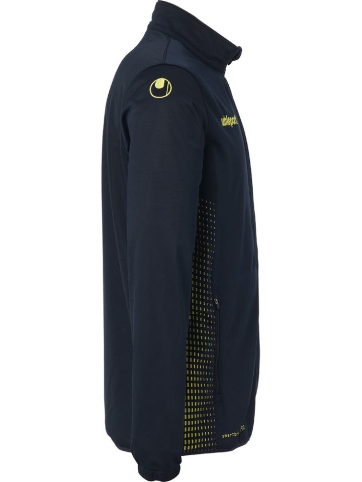 Куртка из полиэстера с воротником-стойкой - Принт SCORE - Вышивка uhlsport на левом рукаве - Эластичные манжеты и пояс - Два кармана на молнии - Вышивка uhlsport на груди Материал: 100% полиэстер, начесанный пике