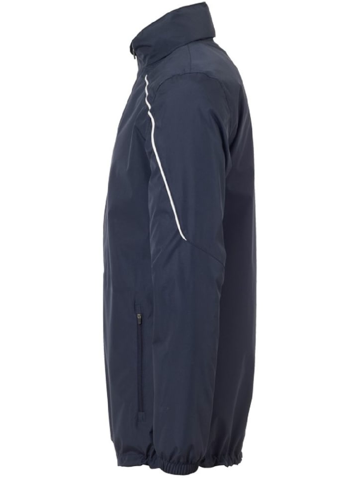 Воротник-стойка со встроенным скрытым капюшоном - Водоотталкивающее покрытие, 1000 мм водяного столба - Внутренняя подкладка с отверстием для оптимальной отделки - Два кармана на молнии - Гараж на молнии - Эластичные манжеты - Бирка для имени/петля для подвешивания на воротнике - Принт uhlsport на груди - Регулируемый эластичный шнур со стопором на подоле - Кант в стиле Stream 22 Материал: 100% полиэстер