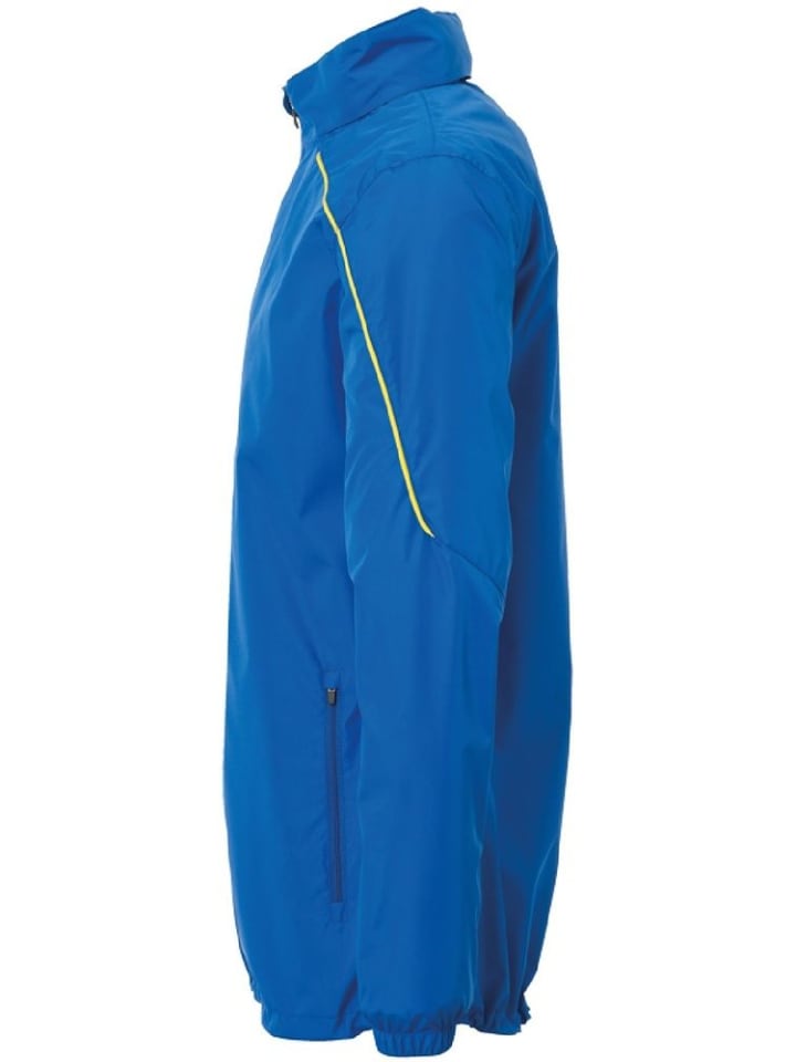 Воротник-стойка со встроенным скрытым капюшоном - Водоотталкивающее покрытие, 1000 мм водяного столба - Внутренняя подкладка с отверстием для оптимальной отделки - Два кармана на молнии - Гараж на молнии - Эластичные манжеты - Бирка для имени/петля для подвешивания на воротнике - Принт uhlsport на груди - Регулируемый эластичный шнур со стопором на подоле - Кант в стиле Stream 22 Материал: 100% полиэстер