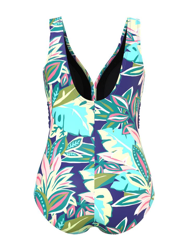 Купальник с мягкими чашечками и ярким узором в виде листьев. Женственный пояс с декоративным кольцом под грудью. Поддерживающая лента под грудью, подкладка спереди. Изготовлен из переработанного полиамида. OEKO-TEX.