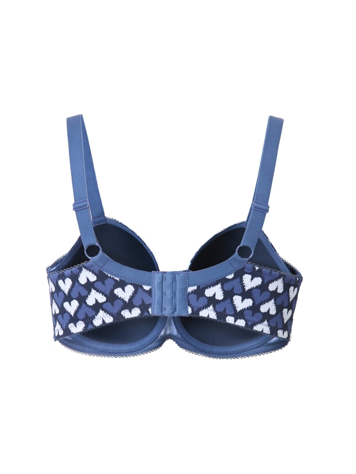 Бюстгальтер на косточках с мягкими чашками и узором в виде сердечек. Бретели регулируются.