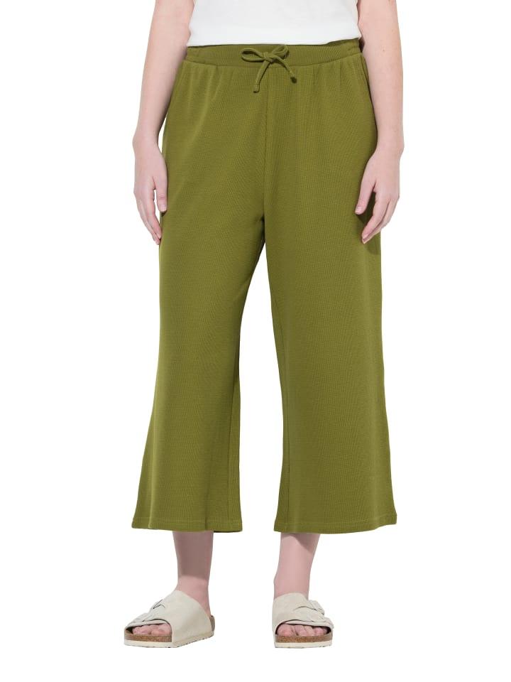 Спортивные брюки из органического хлопка, очень мягкие, вафельной вязки. Длина до колена, широкие, расклешенные штанины. Эластичный пояс с завязкой и боковыми карманами. Органический; сертифицирован ECOCERT Greenlife, лицензия № 152026. Внешний материал: 97% хлопок, 3% эластан.