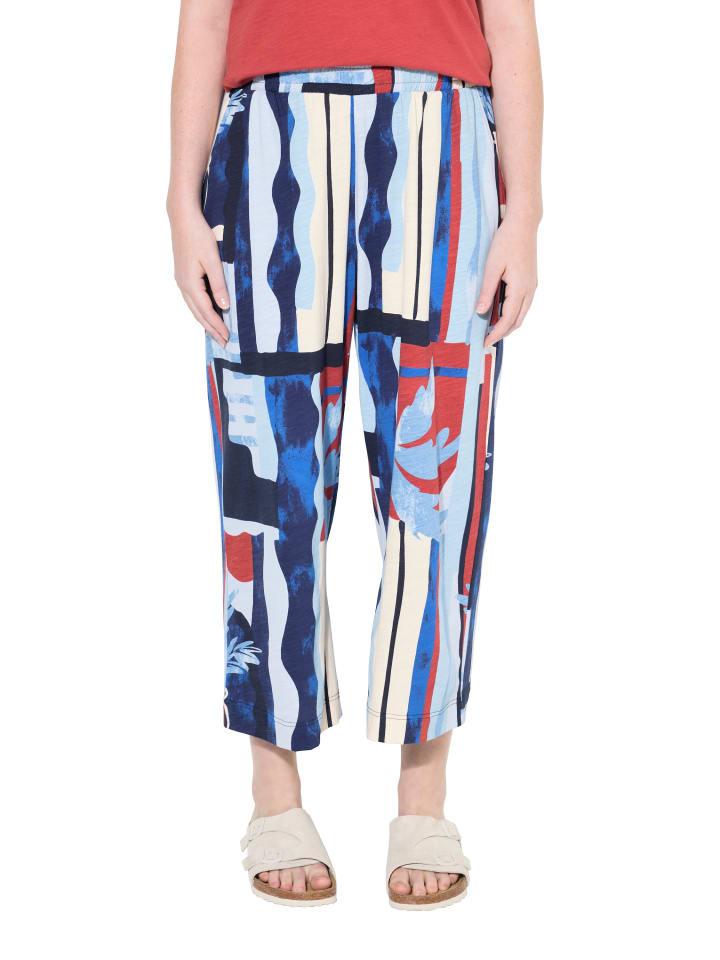 Трикотажные брюки-кюлоты из органического хлопка. Мягкий трикотаж с рисунком в виде средиземноморских ваз. Длина примерно до колена, широкие расклешенные штанины, эластичный пояс и боковые карманы. Органический; сертифицирован ECOCERT Greenlife, лицензия № 152026.