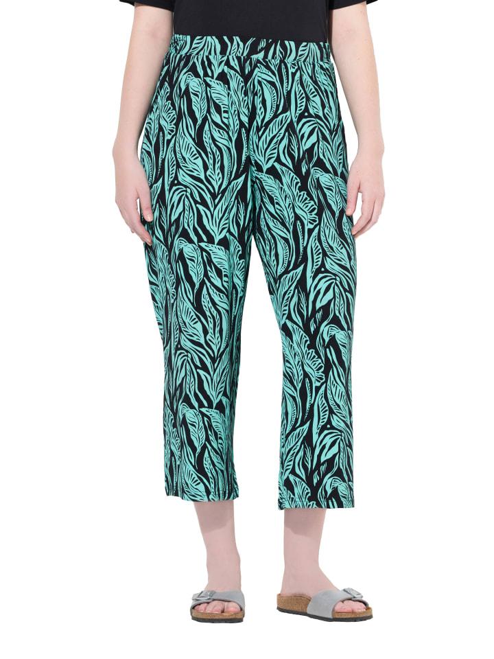 Трикотажные брюки-кюлоты из органического хлопка с принтом джунгли. Длина примерно до колена, расклешенные брюки с эластичным поясом и боковыми карманами. Органический материал; сертифицирован ECOCERT Greenlife, лицензия № 152026.