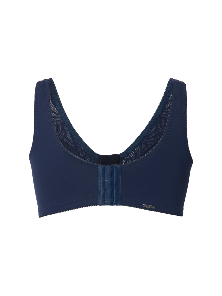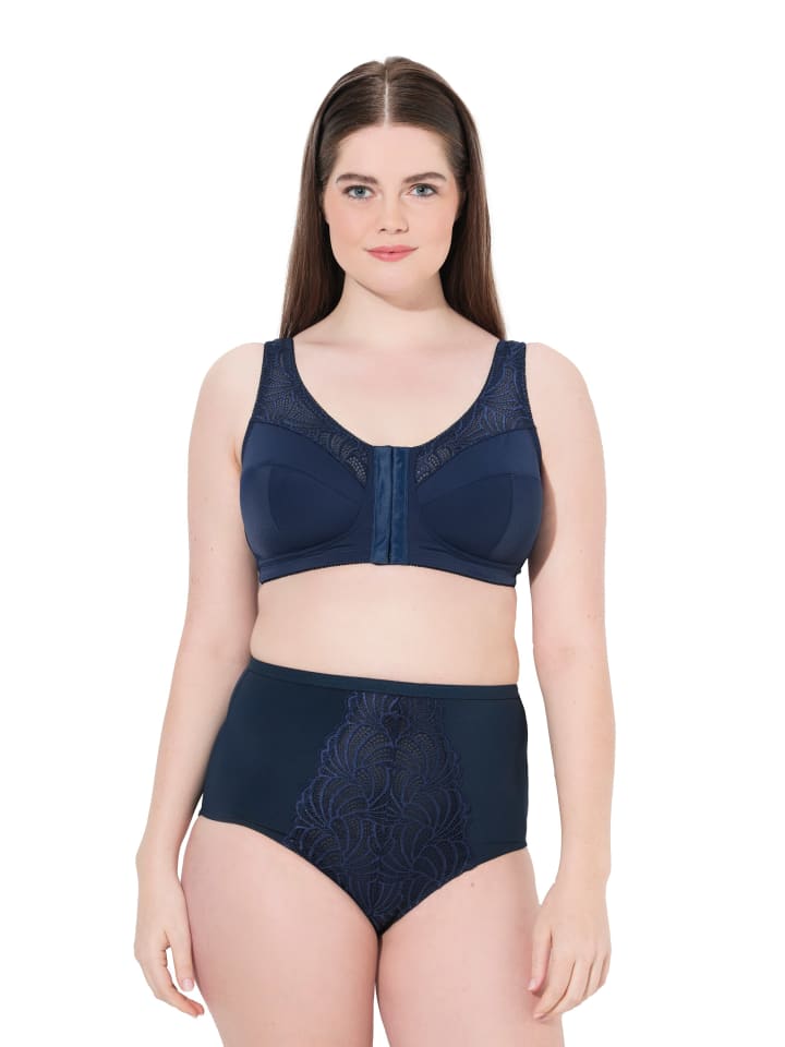 Поддерживающий бюстгальтер с застежкой спереди и сзади. Тонкое кружево на широких, мягких, регулируемых бретелях. Проверенная посадка.