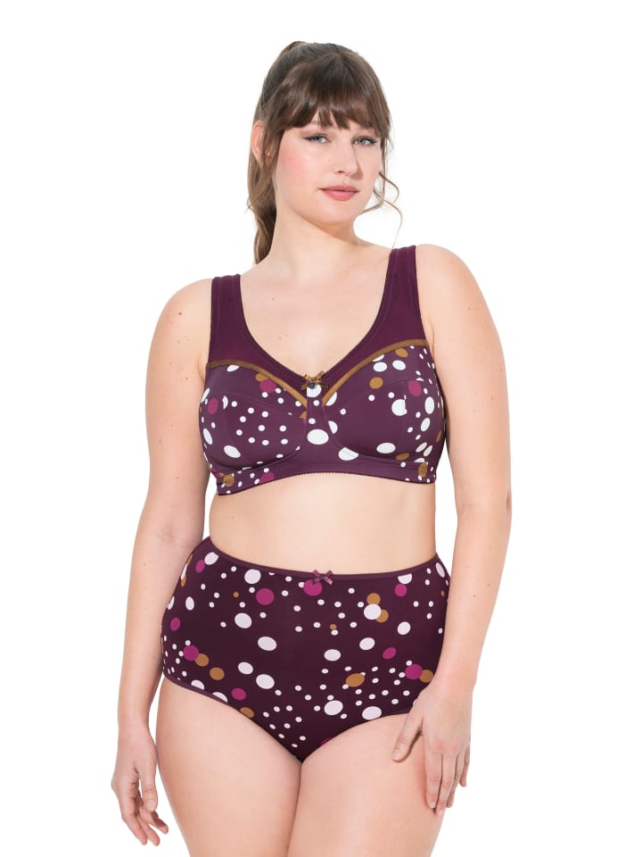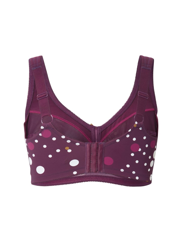 Поддерживающий бюстгальтер без косточек, с горошком и декоративной лентой на вырезе. Удобные широкие, мягкие и регулируемые бретели. Поддерживающая лента под грудью.
