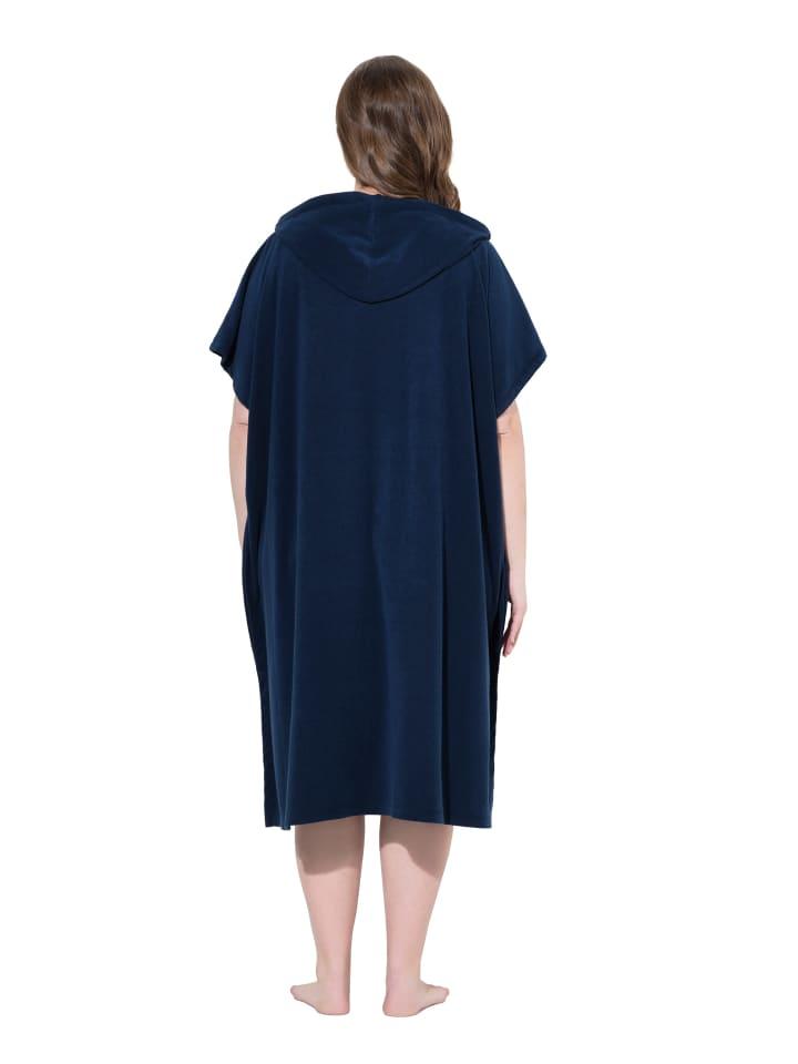 Махровое пончо свободного свободного кроя из мягкой хлопковой махровой ткани. Очень практично: боковые застежки-кнопки до самого подола для легкого надевания. Идеально подходит для чувствительного живота или беременных женщин. Капюшон и V-образный вырез. Небольшая вышивка, карман. OEKO-TEX.